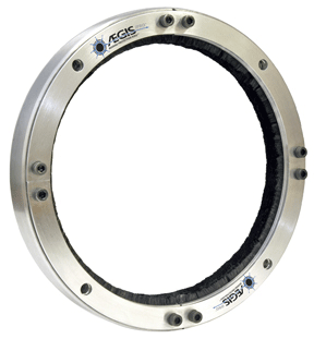 In the electrical AC motor industry, the use of variable speed drives greatly increases generation of electrical current on the shaft of the AC motor and causes electrical damage to bearings unless a mitigation strategy is employed Damaging shaft current is built up in AC motors when controlled by variable frequency drives (VFD) using pulse width modulation (PWM) to control the AC motors. These drives use insulated gate bipolar transistors (IGBT) with extremely high switching speeds which create common mode voltages because of the V/T due to parasitic capacitive coupling between the stator and rotor. The result is shaft current that dischargers through the motor bearings from shaft to frame causing fusion craters in the bearing race wall, ultimately resulting in severe frosting and fluting. Without protection this phenomenon occurs immediately upon operation of the motor/drive system and continues until costly failure occurs. Aegis shaft grounding ring provide a revolutionary solution to extend bearing life of the motor. The aegis solution overcomes the obstacles encountered with the application of other technologies. Key aegis benefits are:
