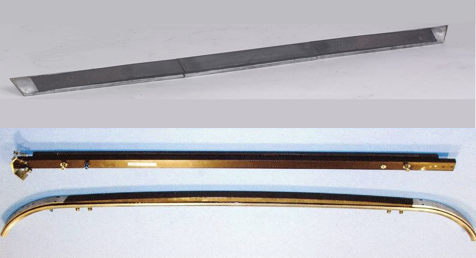 Bonded carbon to Aluminium: is a relatively new support method that gives a lightweight self-supporting assembly developed for high-speed pantographs. The carbon is one piece, curved, plain carbon. Each system has to be designed specifically to meet its own particular requirements.
